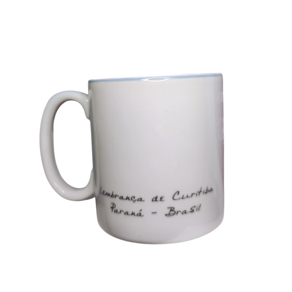 No verso, a peça traz a inscrição "Lembrança de Curitiba, Paraná - Brasil", tornando-a um presente afetivo e inesquecível para quem visitou ou ama a nossa cidade. Com um acabamento brilhante e cores que saltam aos olhos, esta caneca transforma um objeto utilitário em uma verdadeira peça de decoração que transborda a identidade curitibana.