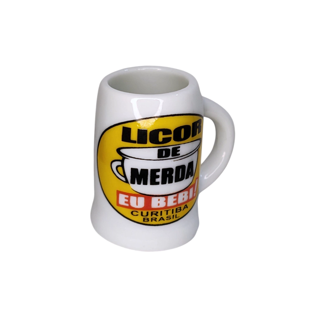 Um souvenir com dose dupla de humor! Esta Mini Caneca é o item perfeito para quem tem coragem — ou bom humor — de encarar a lenda do "Licor de Merda". Com apenas 20ml, ela é ideal para servir aquela dose caprichada de um shot, licor, ou apenas para usar como um divertido enfeite de mesa.